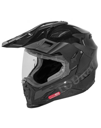 But the Aventuro Carbon 2, certified according to ECE and DOT, scores points not only in terms of safety. Specially designed for the complex requirement profile of enduro travel, it convinces with well thought-out detailed solutions. The trend-setting ventilation system with six adjustable air inlets and four air outlets is particularly important during physical exertion. Of course, all ventilation openings can be closed if necessary, so that the Carbon2 plus is also very comfortable to wear in rainy weather and on long motorway journeys. For the latter purpose, its sophisticated aerodynamics are also convincing, ensuring a pleasantly low noise level and low strain on the neck muscles. The pre-shaped cheek pads made of skin-friendly and washable Coolmax also contribute to the high wearing comfort. The "Ergo Padding System" allows the helmet to be optimally adjusted to the individual head shape of the wearer by means of several foam padding strips. The adjustable helmet shield offers protection from stones and low sun. The scratch-resistant coated, three-dimensionally cast visor snaps cleanly into place, closes securely and also offers a ventilation position with a narrow gap.