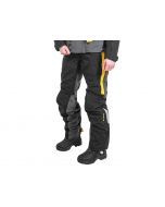What's clever with the Touratech Compañero World Traveller is that the windproof, waterproof membrane forms the outer layer of the clothing system. The airy summer suit keeps an air cushion inside that acts as a thermal lining. An additional insulating layer such as fleece underwear is only needed in extremely cold weather. In wintry conditions the optional storm collar will also be greatly appreciated. As you'd expect, the jacket and trousers of the membrane suit can also be zipped together. If you wear the laminate suit in uncertain weather conditions in spring or autumn, securely closable ventilation zips provide cooling if required.
