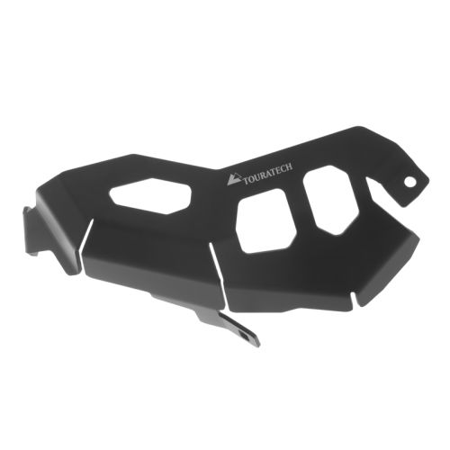 Made of 3 mm aluminium and with specific attachment points, the Touratech cylinder protector can cope with R1200GS "drops" as well as tougher impacts.