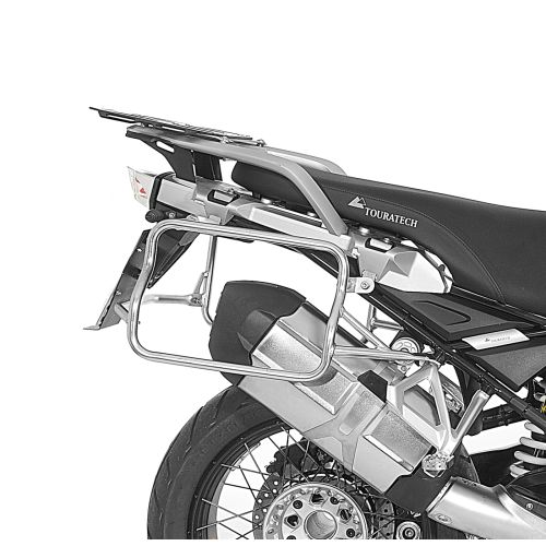 Touratech's stainless steel EVO X pannier rack for the BMW R1250GS/R1200GS is a sturdy rack designed to take Touratech ZEGA EVO X cases. This is the perfect case system for extended touring.