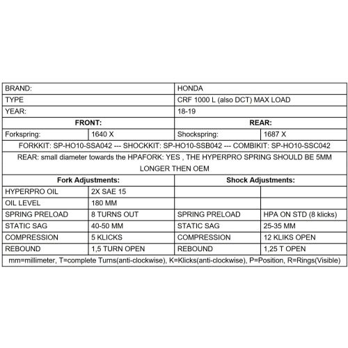 Info: Only fits * Honda CRF1000L Africa Twin 2018-2019 with origin spring elements*