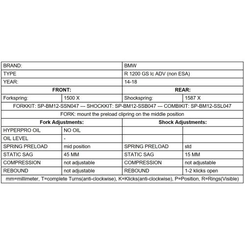This Set of progressive replacement springs has been designed to match the BMW R1200GS(LC)/R1250GS Adventure perfectly, and offer a "tremendous improvement" in response and greater safety in extreme situations. Replacing the front and rear springs will lead to a significant improvement and more riding pleasure with your motorbike.