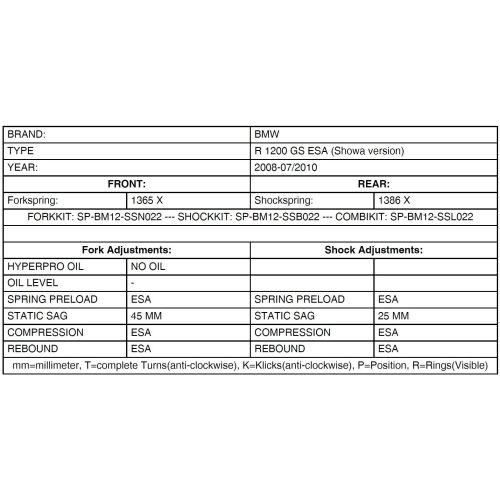 Info: Only fits * BMW R1200GS 2007-2010 with Showa Original BMW ESA shocks *