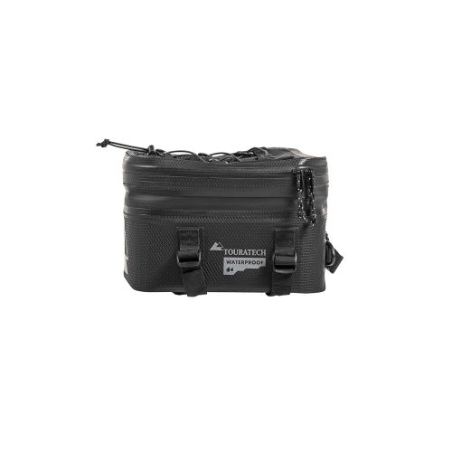 This waterproof tail rack bag was specially designed for Touratech luggage racks, but also fits most standard luggage racks. Thanks to the extra-long straps, the bag can also be mounted on almost any pillion seat. The already large capacity of approx. 8 litres can be extended to up to 12 litres by means of the all-round zip. On the top flap and on the weather-protected inside of the top flap, there are mesh pockets that hold small items. The reflector on the back offers passive safety.