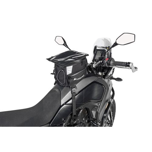 The Ibarra Midi tank bag fits perfectly on the compact tanks of the vast majority of touring enduros such as the Yamaha Tenere 700, KTM 890 Adventure, Honda Africa Twin or Triumph Tiger 900. The Midi even fits the BMW F 800 GS like a tailor-made suit. Excellent fit and unrestricted freedom of movement make the Ibarra Midi a loyal companion even on more demanding off-road stages.