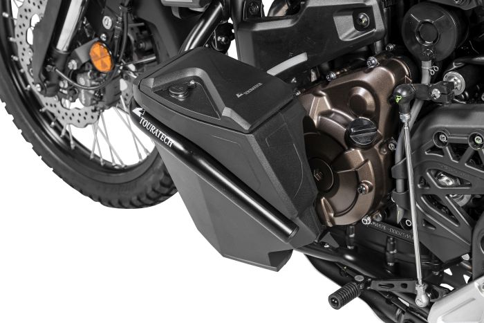 Toolbox with engine crash bar - retrofit kit - left side, stainless steel, black for Yamaha Ténéré 700 (-2024)