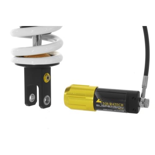The Touratech Suspension Extreme shock absorber ranks in the absolute premium class of suspension components. This Extreme shock absorber for the Triumph Tiger 800 XC/XCx/XCa is perfectly suited to touring and riding with frequent dramatic changes in loading and riding conditions, and the most extreme demands. The Extreme shock absorber is fitted with a position sensitive damping system (PDS), which utilises a second damping piston to provide hydraulic protection against bottoming out. Even fully laden with luggage under the most extreme off-road conditions, the bike will not bottom out and the shock absorber is protected against mechanical overload. Damping characteristics change depending on the road surface. When riding under most conditions, the shock absorber is comfortably adjusted for a less strenuous ride, before the PDS kicks in for the last portion of the shock absorber stroke.