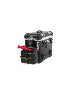 ZEGA Evo accessory holders attach to the pannier in seconds using the standard attachment points of the ZEGA Evo aluminium pannier. Securing the pannier lock automatically secures the accessory holder. The equipment can remain in the holder.